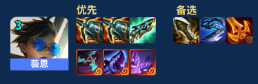 薇恩的装备方面:小6个人认为双海妖+杀人剑是玩起来最爽的,但缺点就是容易被安妮芸阿娜这种AOE伤害弄死,所以正常情况下双海妖+科技枪最佳;前期有羊刀的情况下还是可以合,过渡还是很舒服的,后面再丢给卡莎就行了