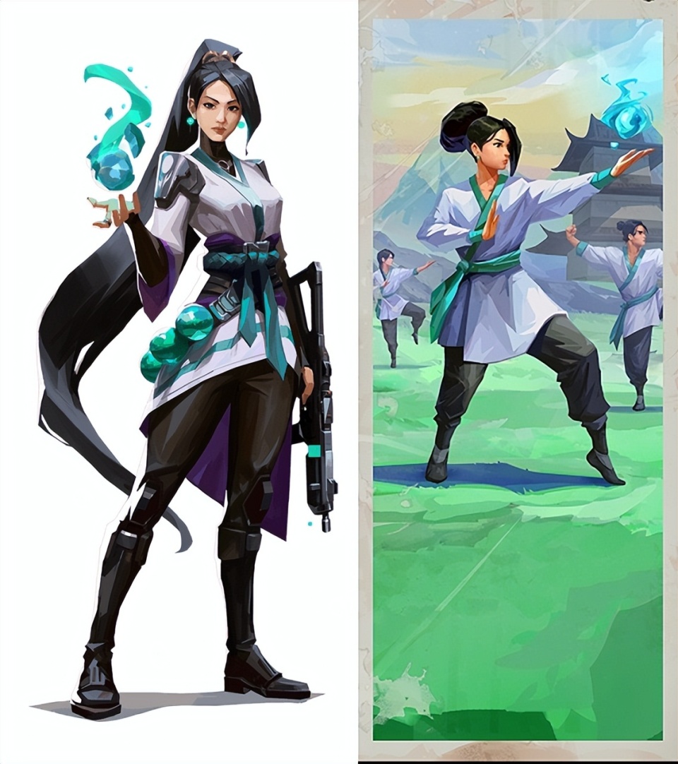 具体到设计细节方面,我们可以以陕西妹子“贤者”魏玲莹为例,来拆解一下设计师在创造角色时的小巧思。在背景设定中,贤者曾于道观里静修多年,因此她的服饰自然要从道家练功服中汲取灵感。不过,传统练功服下摆较长,不利于实战机动,所以设计师将其改良为短裙样式,既保留了东方气韵,又贴合了战术需求。