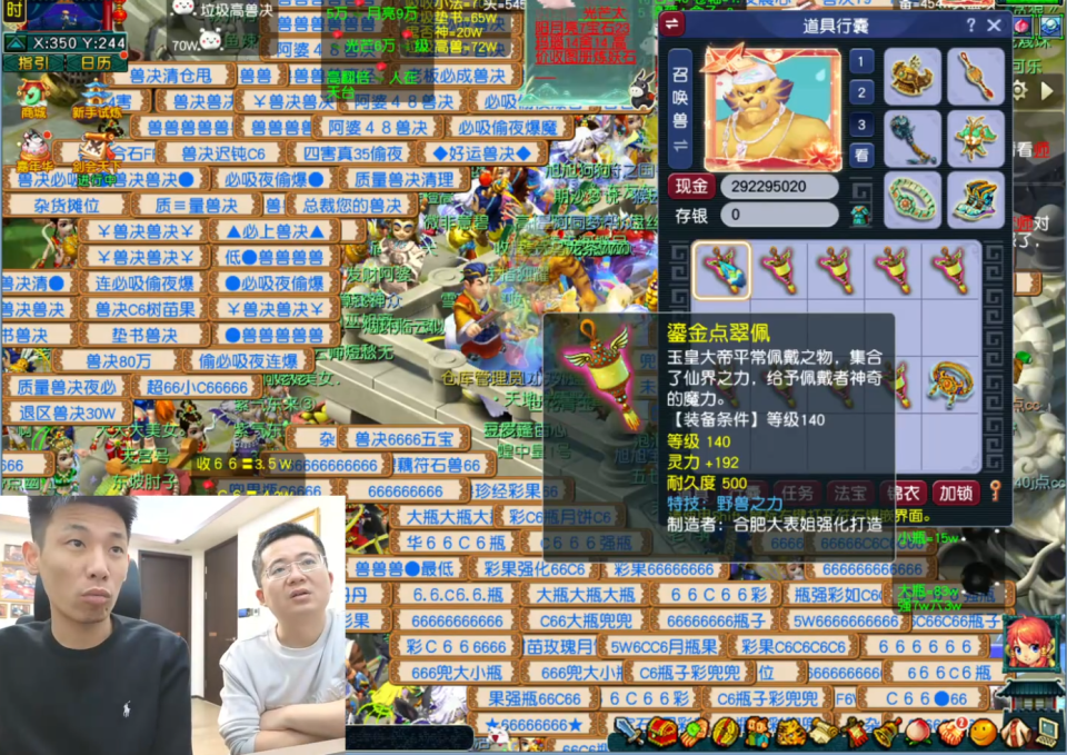 鉴定前期,数百件装备接连“阵亡”,直至140级装备阶段,旭旭宝宝终于爆发“洪荒之力”——一条192高灵力的野兽项链跃入画面。凭借其附加物理伤害的特技效果,这项链算是服战级玩家的首选硬件。