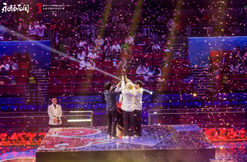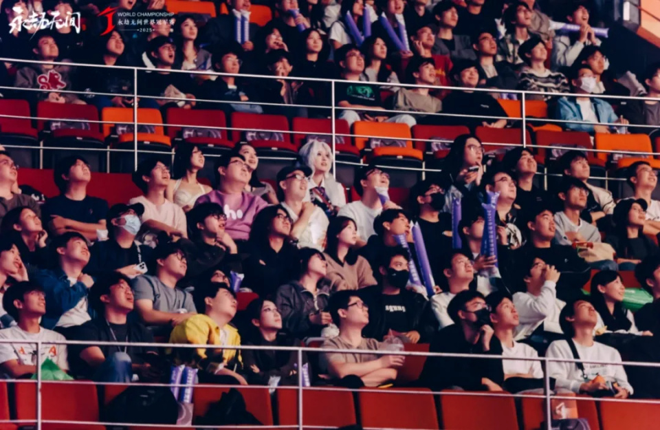 在我身旁,坐满了来自五湖四海的《永劫无间》玩家,大伙都是为了今晚而来,为了2025《永劫无间》世界冠军赛的总决赛而来,为了在深圳“春茧”体育馆中迎接新王而来。比赛中,每一次险之又险的博弈,每一次惊心动魄的反杀,都引得现场观众爆发出阵阵欢呼与呐喊。
