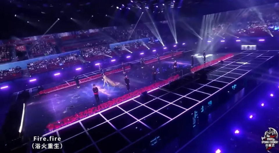 单排总决赛现场的气氛,从希林娜依·高演唱的《命运火焰》响起便被点燃。作为《永劫无间》二周年推广曲,同时也是游戏常用的大厅待机BGM,《命运火焰》在许多玩家心中是最具“劫”味的歌曲——每当旋律响起,那些初入聚窟州的日子就会浮现在眼前。而当本届主题曲《破茧》那充满战意的副歌陡然炸响,十二位选手自光影中列队走出时,无需任何言语去形容,那种顶尖高手汇聚一堂、即将一决生死的压迫感与荣耀感,瞬间扑面而来。