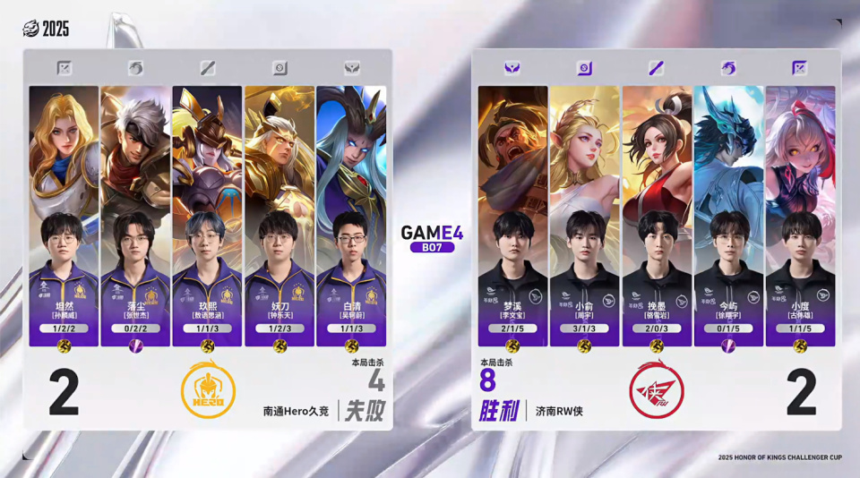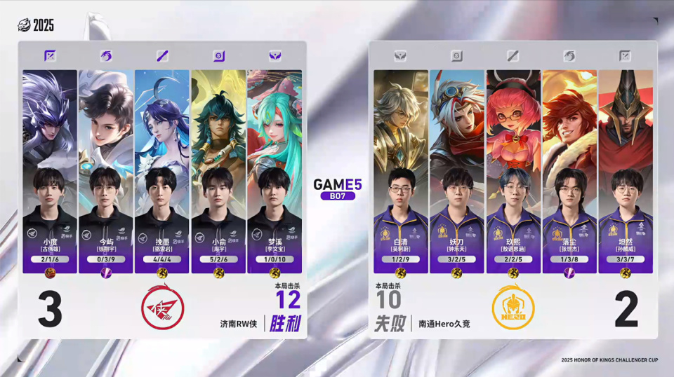 Hero少一个人的情况下想强行秒主宰,但伤害有点不够,RW众人追上来,妖刀抢到了龙,这波运气已经相当好了,但镜还是被哪吒大招飞了,还是小俞拿下击杀,hero连续掉点。最后的决胜团hero问题很大,坦然关羽绕后一个打三个,但完全没有队友能跟他一起冲,就导致坦然孤立无援先倒了。哪吒和姬小满留住hero四人,女娲大招伤害打满。镜换位去切公孙离也没有成功,在中后期团战的处理上,RW确实更胜一筹。最终RW打出团灭,4-2战胜hero,成功晋级胜者组决赛。