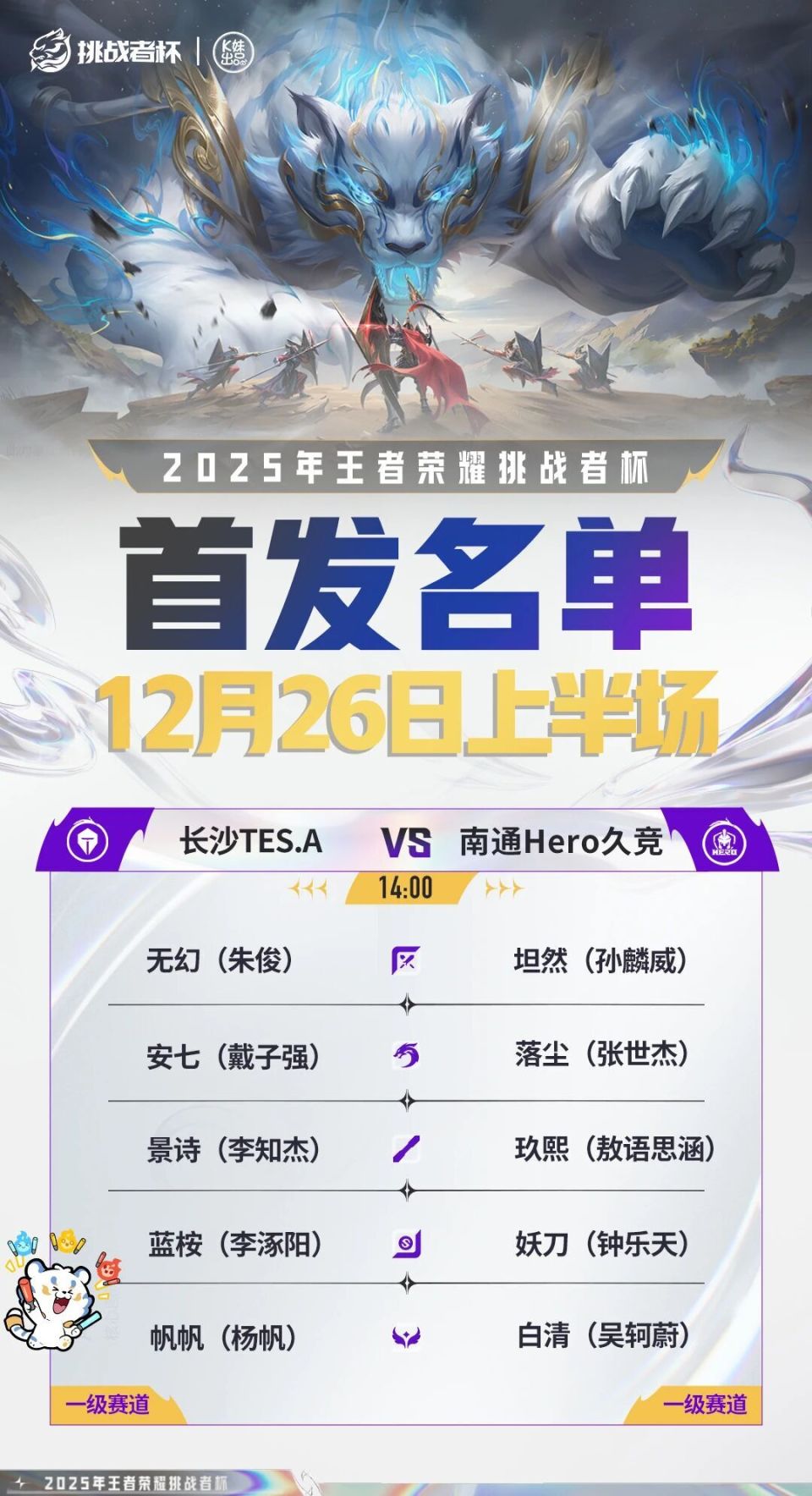 狭路相逢,细节决胜!是零封对手士气正盛的长沙TES.A延续上把的火热手感再下一城?还是南通Hero久竞及时调整,突破重围扳回一局?