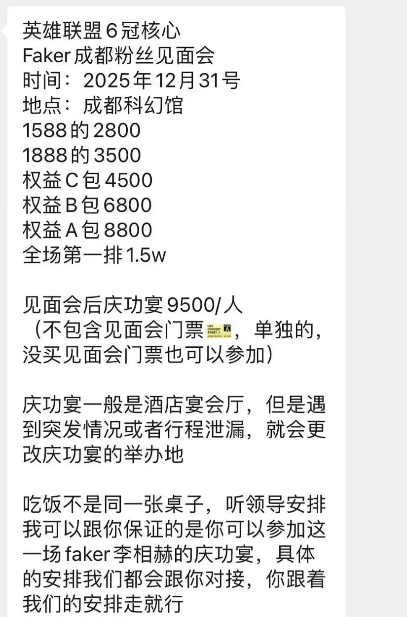 Faker中国行引热议,天价庆功宴公布,入场价9500,圈钱意图明显