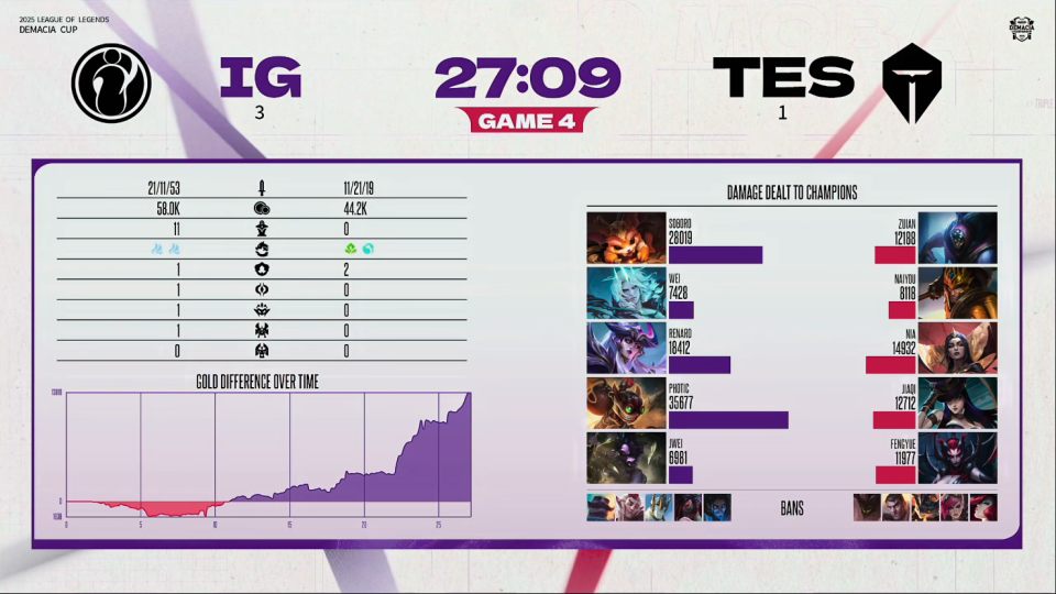 德玛西亚杯:让一追三,IG四局战胜TES,晋级下一轮