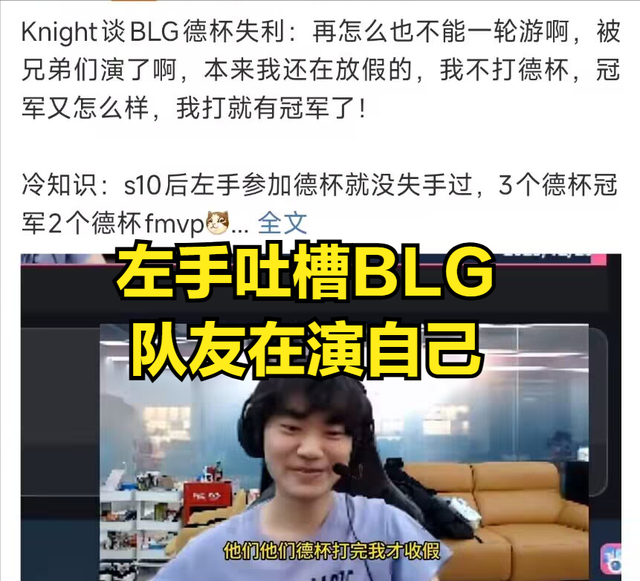 左手吐槽BLG德杯惨败,BLG队友都是“演员”!自己参赛必定夺冠