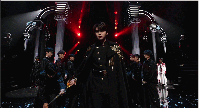 自闪烁着神秘光影的大门后降落,Paraboy身穿双排扣军装、披着黑色风衣、手持骑士佩剑,迎着两侧观众目光踏步而行,走向了前方的秀场……