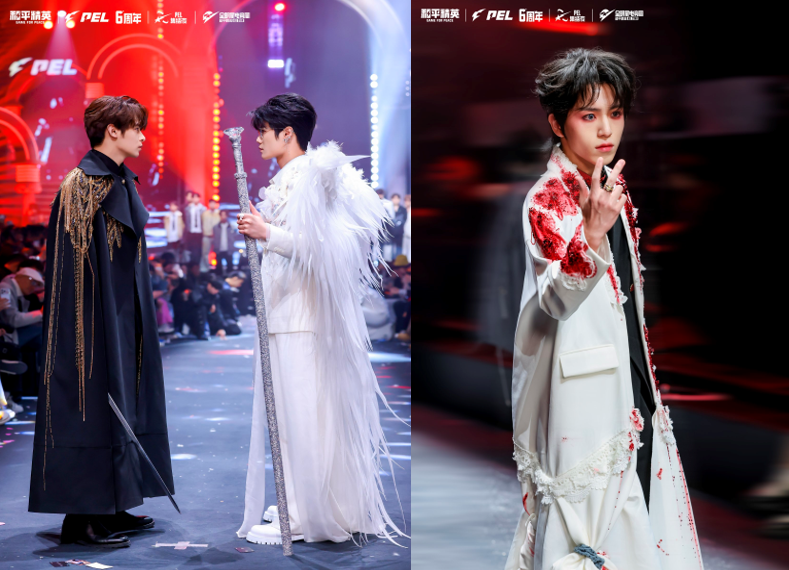 以选手33Svan为例,其白翼天使的造型在微博上被粉丝疯转,延展出了#33天使下凡#、#33白翼天使睥睨全场#等多个高热话题。在小红书上,粉丝拍下这身打扮的33Svan被路过小狗吸引目光的视频,也让大家看到了他“很可爱”的一面。