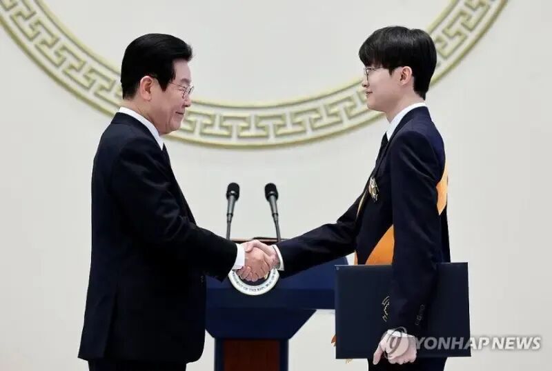 Faker获得韩国体育界最高荣誉勋章“青龙章”,总统李在明亲自颁发