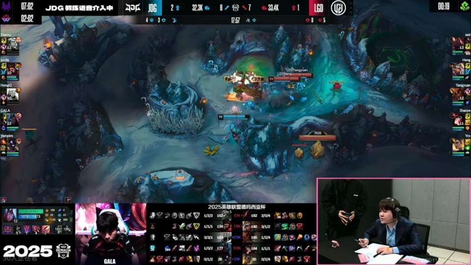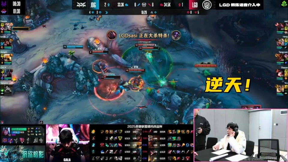 LGD虽然打进了四强,但实力跟JDG差距太大了,教练在比赛的时候,更是上演了搞笑名场面,第一局18分钟左右,LGD就已经双龙开局了,停牌龙团战,上辅蹲草先秒一个,5打4的情况下,只要稳一点,稍微拉扯一下,老干爹团战肯定是能赢的,结果教练突然发力,打团介入了语音。