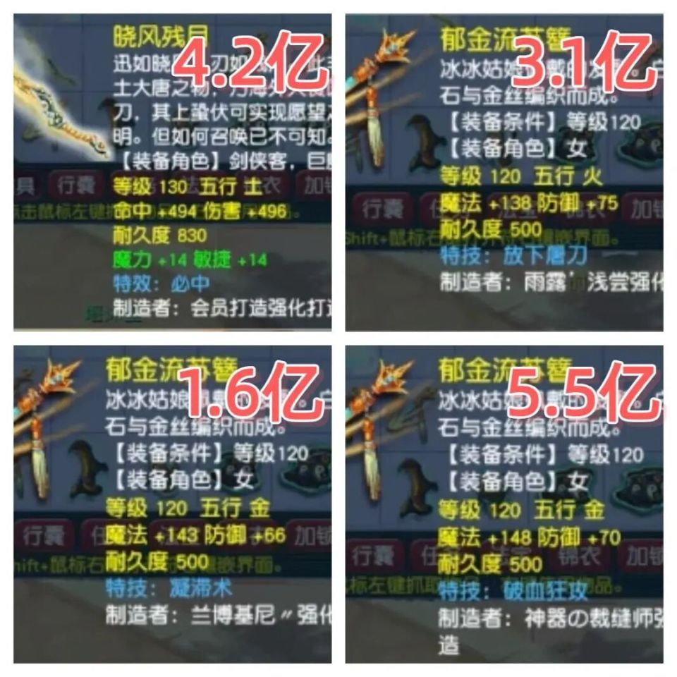 三件120级女头分别以放下屠刀(防御+75)3.1亿、凝滞术(防御+66)1.6亿、破血狂攻(防御+70)5.5亿成交。