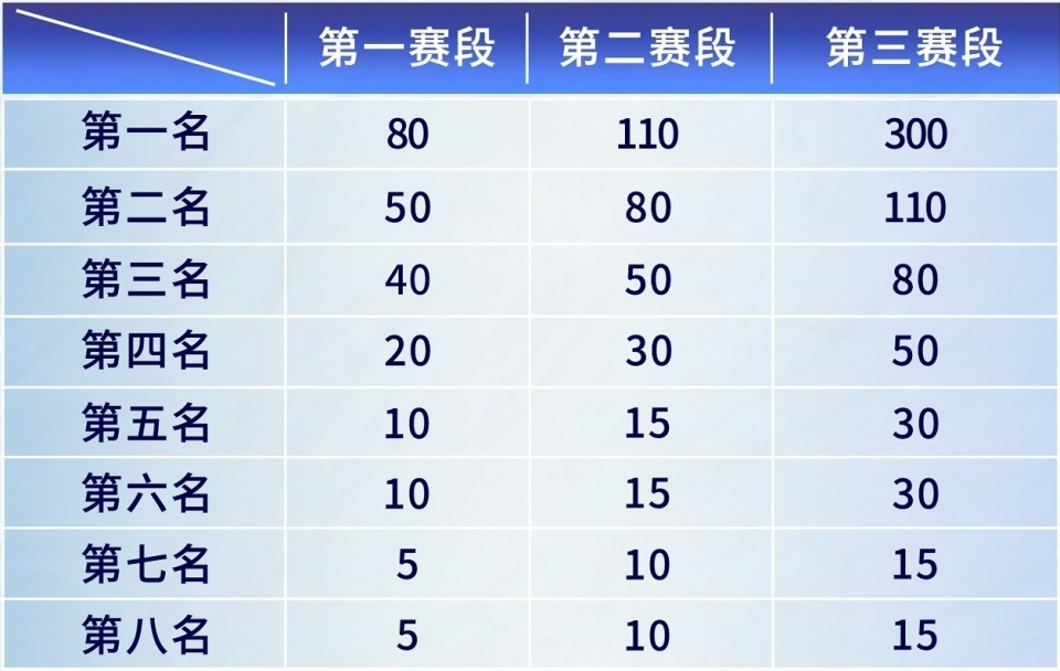 而今年赛制改革之后,第一赛段优胜者的积分高达80分,第二名也有50分,比去年的优胜者积分还要高。