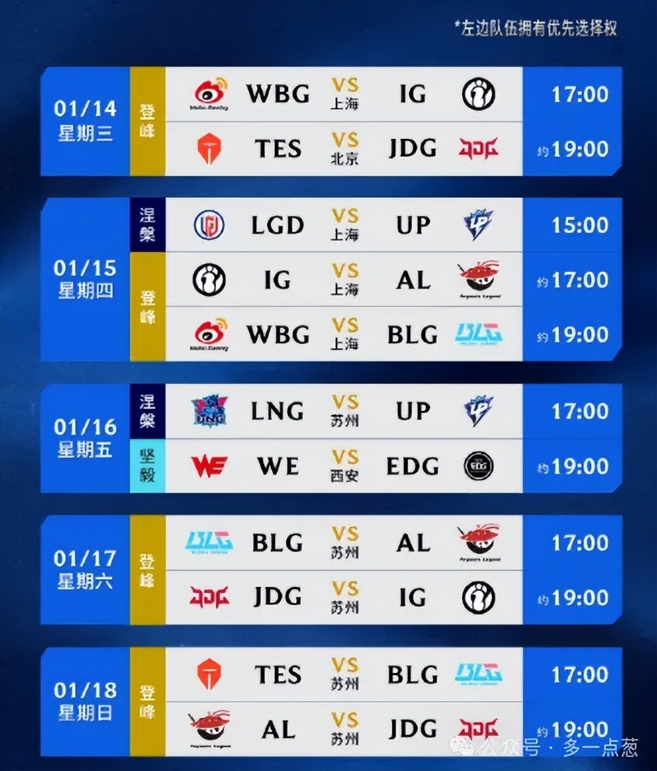 综合来看,这次赛制设计可以说是相当合理,给弱队晋级机会,同时提高上游队伍的竞技强度,为全球先锋赛做好准备,同时也提高了观赛质量。揭幕战将在1月14号正式打响,将由WBG和IG开打。值得注意的是,IG是拿到了德杯的冠军,现在他们的状态如日中天,IG是有很大的机会拿下揭幕战的首场比赛。