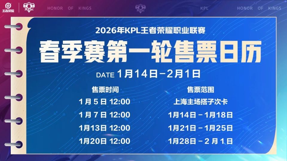 2026KPL春季赛常规赛第一轮线下观赛门票将于1月7日中午12:00正式开售!