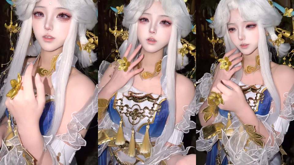 另外,除了上面这2位网红之外,网红铃木池还曾经cos过嫦娥的珍品传说皮肤,不过该说不说她这个妆容就是比较有网红感,所以看起来比较呆滞。但是她这个妆容还是很仙气的,而且整体造型非常的还原。