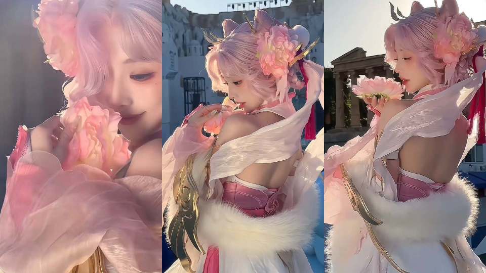 当然,除了付慧琳cos的嫦娥拒霜思之外,网红六只奶酥也曾经cos过嫦娥的拒霜思这款皮肤。她cos的相对来说比较“柔情”,造型同样也很还原。而且她这个美背超级不错,让很多玩家都点赞了。