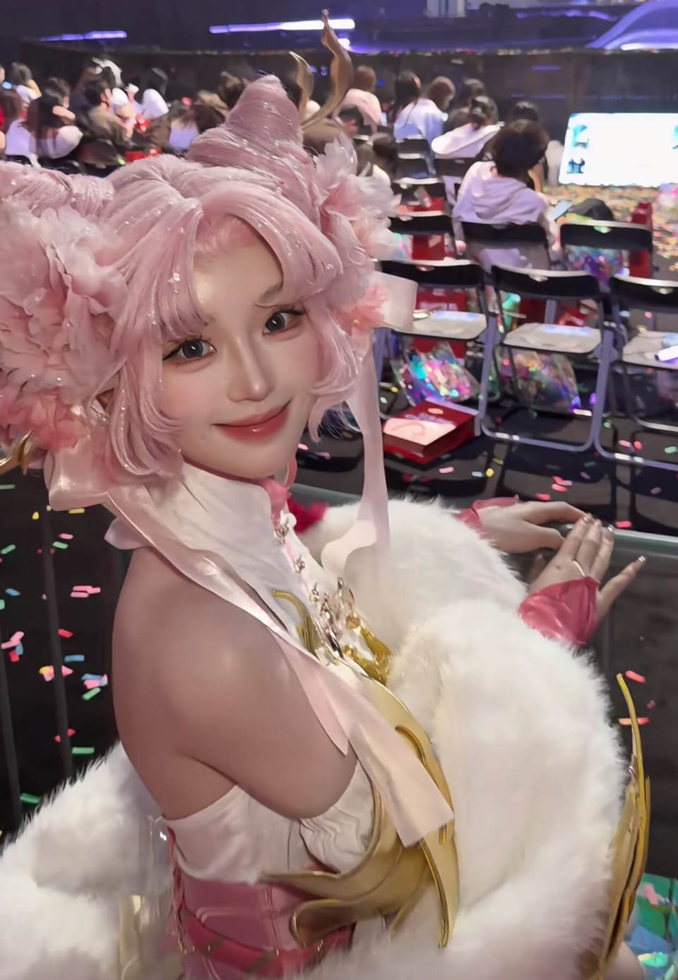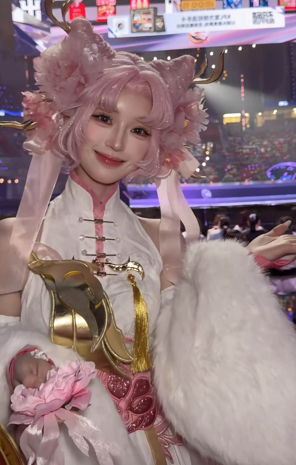 近期,网红付慧琳也是被官方邀请到了kpl的线下比赛中,她cos的是嫦娥的拒霜思这款皮肤。这款皮肤是一款6元限定皮肤,皮肤主色调是属于那种粉粉嫩嫩的皮肤,她cos的形象很好看,也很还原。