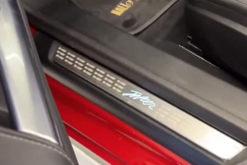 可以看到,打开车门的一瞬间,Faker的个人专属签名图标就映入眼前,太有牌面了,这就是LOL第一人啊,Faker开这个车出去,回头率百分百,红色跑车就是永远的神。