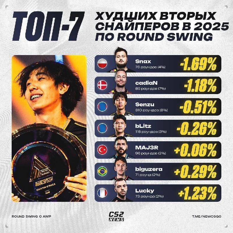 2025年副狙排名:Senzu“最坑”,FalleN最佳