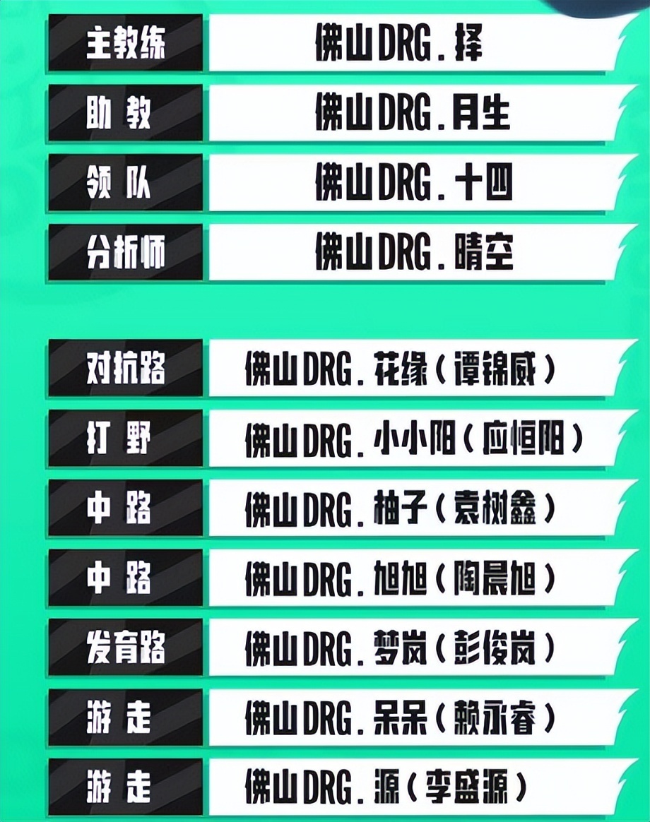 DRG的大名单变动也不小,挑杯抽象三人组都不在大名单了,等来了小小阳成年,并且引进青训中单柚子,辅助呆呆来自全国大赛。择教还是比较擅长调教新人的,DRG这套新老结合的阵容看着有一定竞争力,感觉可以保A冲S。