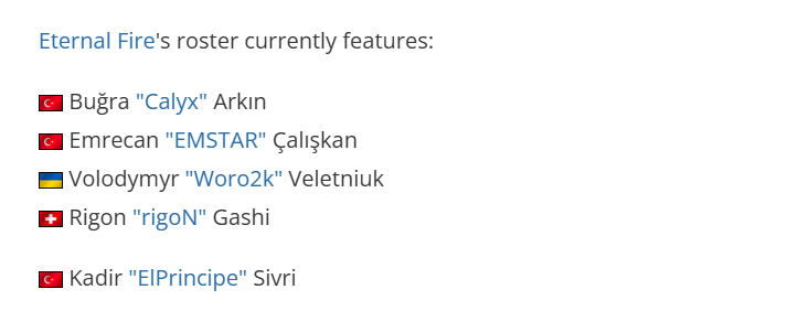 Eternal Fire现已宣布签下Woro2k和rigoN,这是继几天前队内的三名选手被下放之后,俱乐部的首次引援。此举标志着Eternal Fire向国际化方向的转型,该俱乐部在此之前一直维持着全土耳其阵容。在去年中期,他们曾尝试组建以波兰选手为主的阵容,其中包括bnox、maaryy和mASKED,但在三个月后就又回归到了全土耳其阵容。