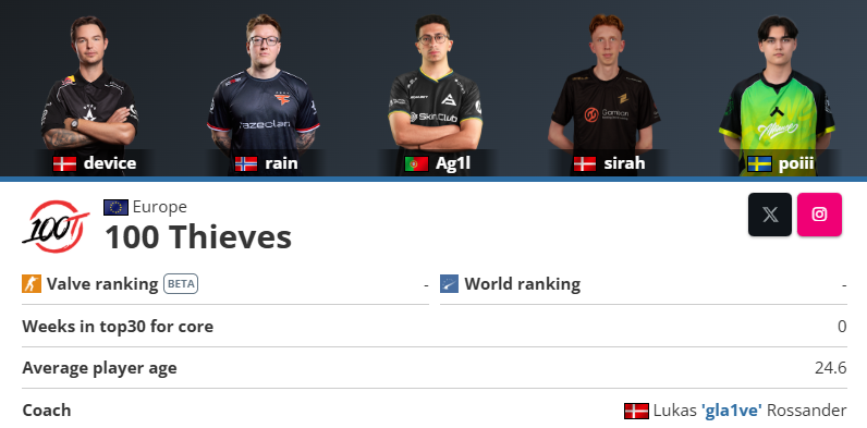 100 Thieves正式宣布招入丹麦狙击手device,此举也印证了先前HLTV和Dust2.dk的爆料真实性。