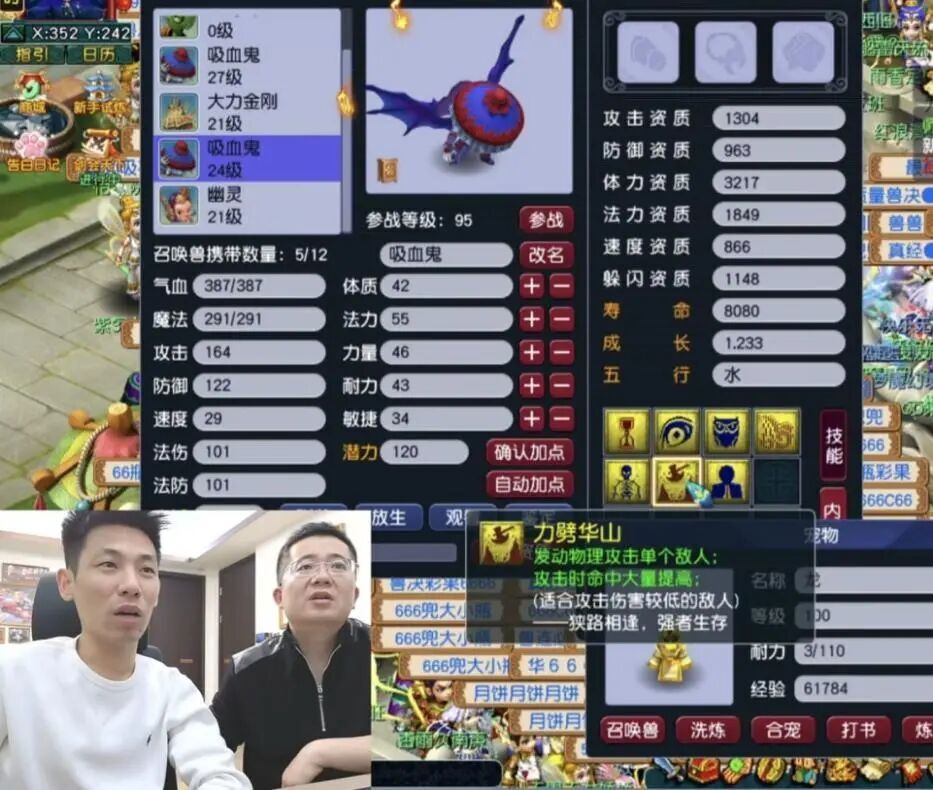 紧接着,惊喜加倍!两只8技能、同样拥有力劈华山的吸血鬼接连现身。一者资质出众但成长稍欠,另一只胚子则成长亮眼而资质平常。好在龙拳版本中,既有“炼兽真经”可补成长,又有元宵能提资质,假以时日,皆是可造之材!