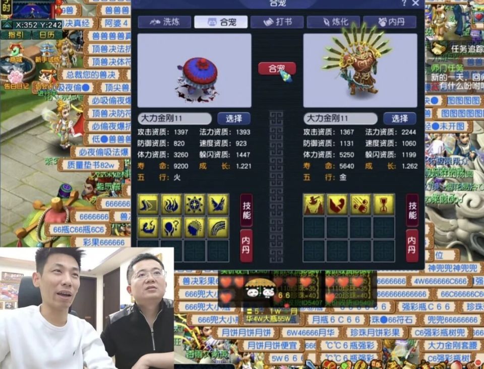 首先登场的是力劈华山吸血鬼的炼妖合宠。宝哥以7-8技能的吸血鬼,搭配3-4技能的大力金刚,强强联手,静待神宠诞生。