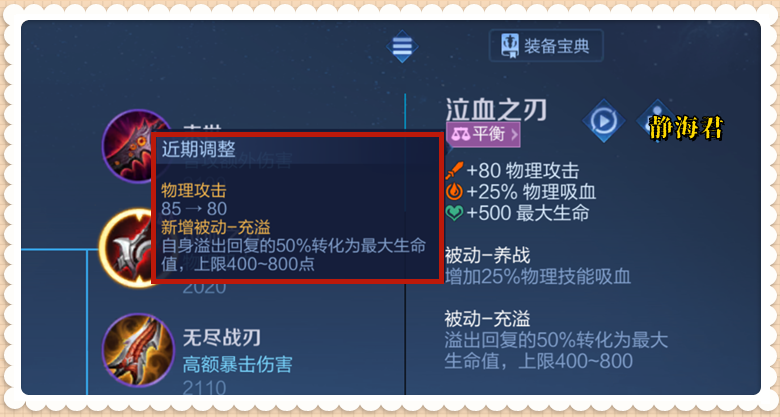 关于装备,这次仅调整了两件,分别是泣血之刃和永夜守护。