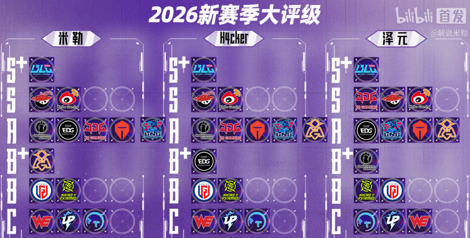 一起来给队伍们评个级
