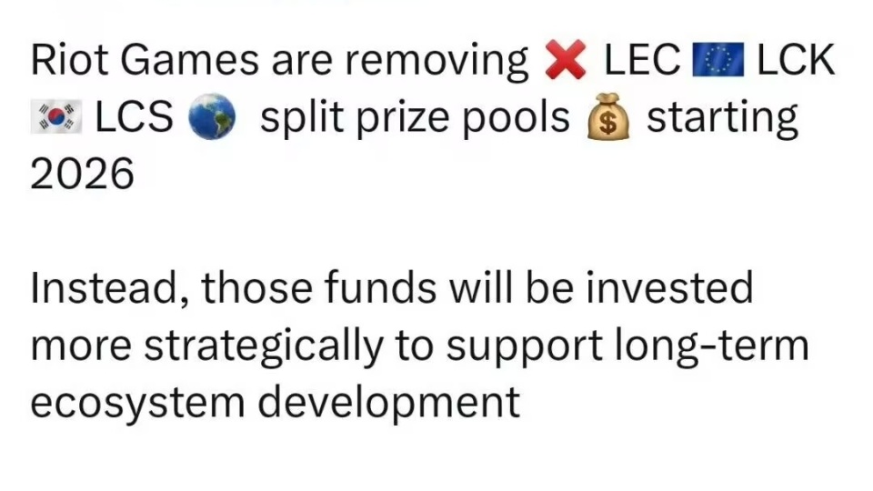 拳头官方于近日发文官宣:2026年开始,取消LEC、LCK、LCS三大赛区的分摊奖金(LPL赛区保留),简而言之就是拳头不给钱了,就算拿下联赛冠军,也不给奖金了,原本以为咱们赛区,是最难混的,拳头这么一搞,LCK好像比LPL更难过了,本身就很难盈利,奖金没了成本更高了。