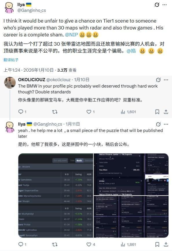 Ganginho:我认为给一个打了超过 30 张带雷达的地图、还故意输掉比赛的人参加顶级赛事的机会,是不公平的。他(cairne)的职业生涯完全是个骗局。
