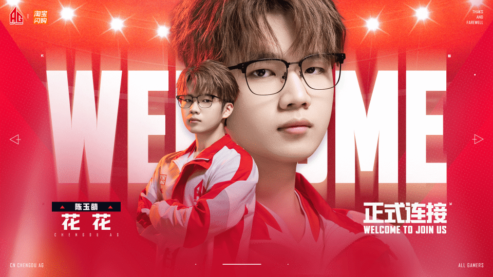 虎扑01月12日讯 成都AG人员变动公告:原江西TJB.花花(陈玉萌)转会至AG。原文如下:
