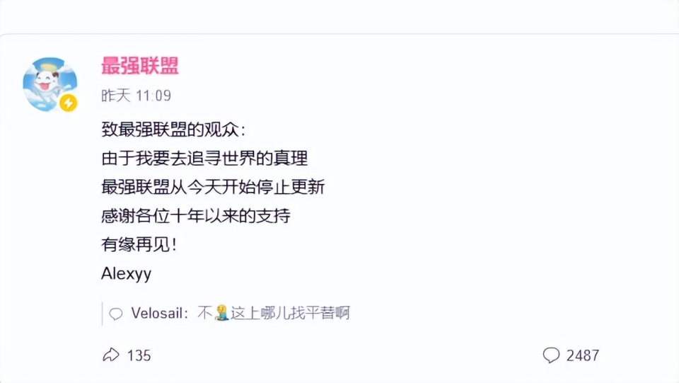 拥有40多万粉丝的,LOL知名赛事UP主最强联盟,大家应该都有看过他的视频,无论是LPL,还是LCK的比赛,他的剪辑都是又快又好,近日最强联盟突然发布动态,宣布无限期停更,这位博主一走,短时间还真找不到平替,没时间看比赛,或者只想看精彩及团战的观众,有点难受了。