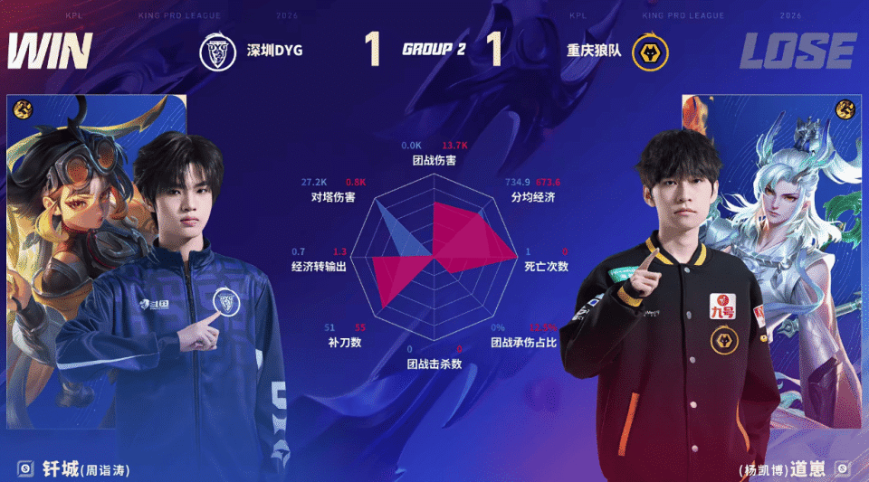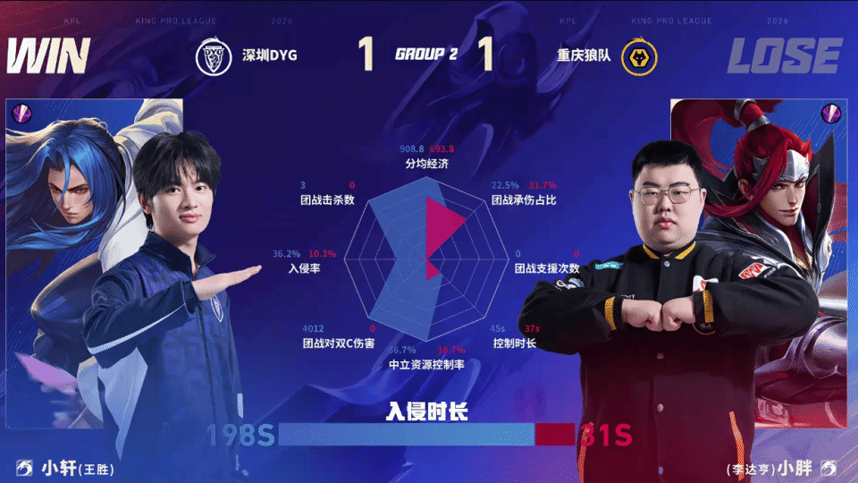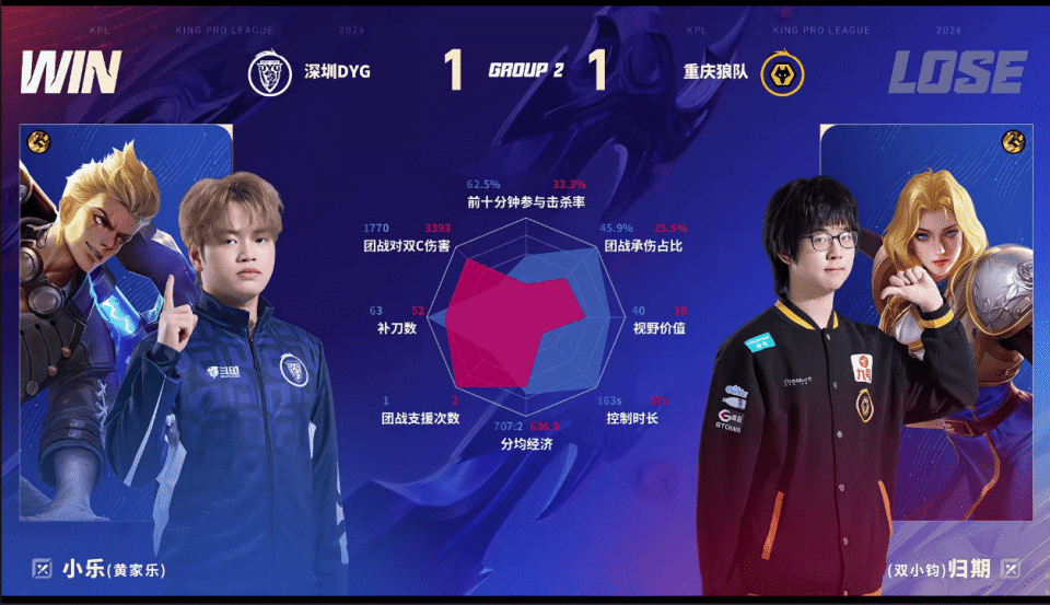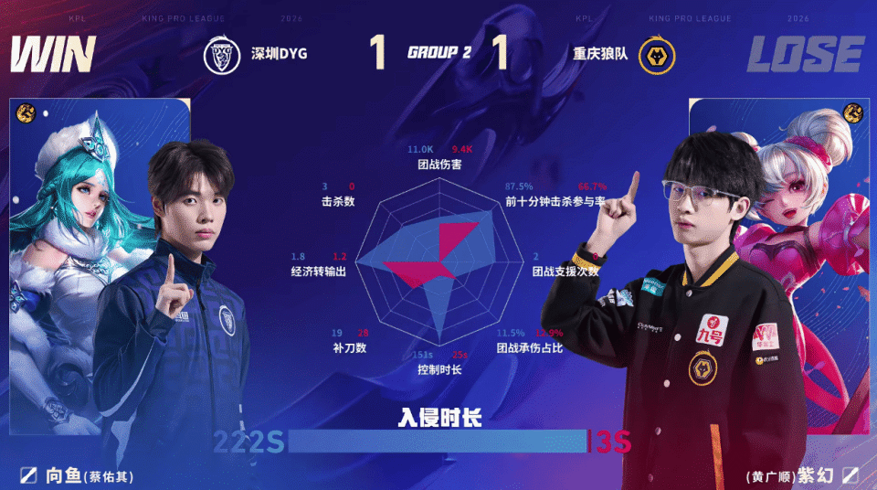 DYG/狼队第二局数据对比:向鱼王昭君多数据包围紫幻小乔