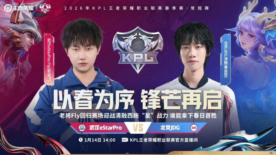 2026年KPL春季赛第一枪由eStar和JDG打响,JDG的首发五人组依旧是挑战者杯那五个,而eStar这边最大的变化就是边路换上了Fly。eStar在训练赛一塌糊涂,据说他们除了K甲队可以赢外,连KPL赛区B组战队都打不过,不知道今天能不能触底反弹咬下JDG!