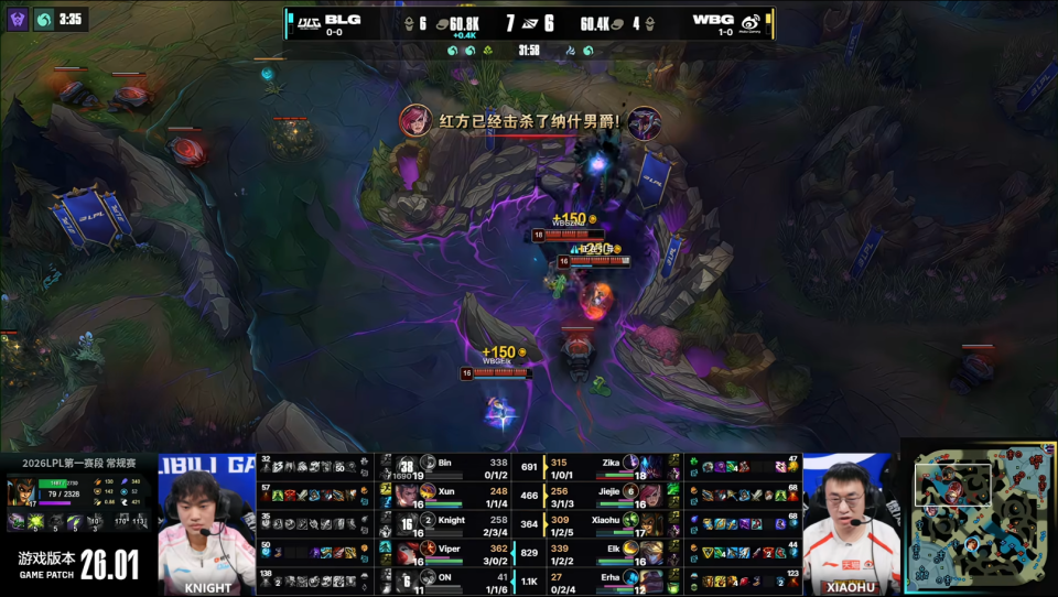 LPL第一赛段BLG和WBG的BO3,双方大战3局之后,BLG让一追二以2-1的战绩击败WBG,拿下开门红,也送给WBG首败!