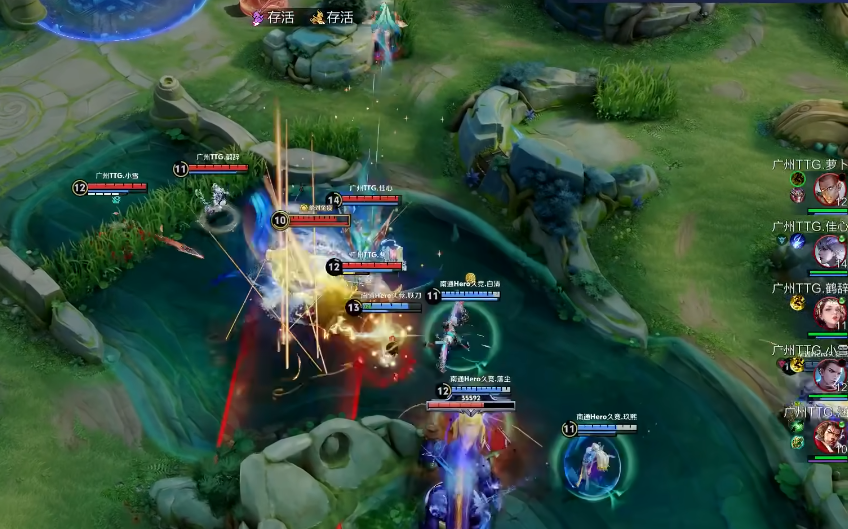 还别说,最后生死局的时候,妖刀的站位确实有问题,因为鲁班父子组合,也许妖刀就放松了一点警惕,在龙坑的草丛中,其实是漏了一点视野,就是这么一丝机会,萝卜的达摩直接闪现上去控住了妖刀,虽然最后妖刀立马后撤了,但是TTG还要杨玉环的爆炸伤害,根本躲不掉。还别说,杨玉环别人都是当辅助玩的,鹤辞这一手中路,效果真心不错。