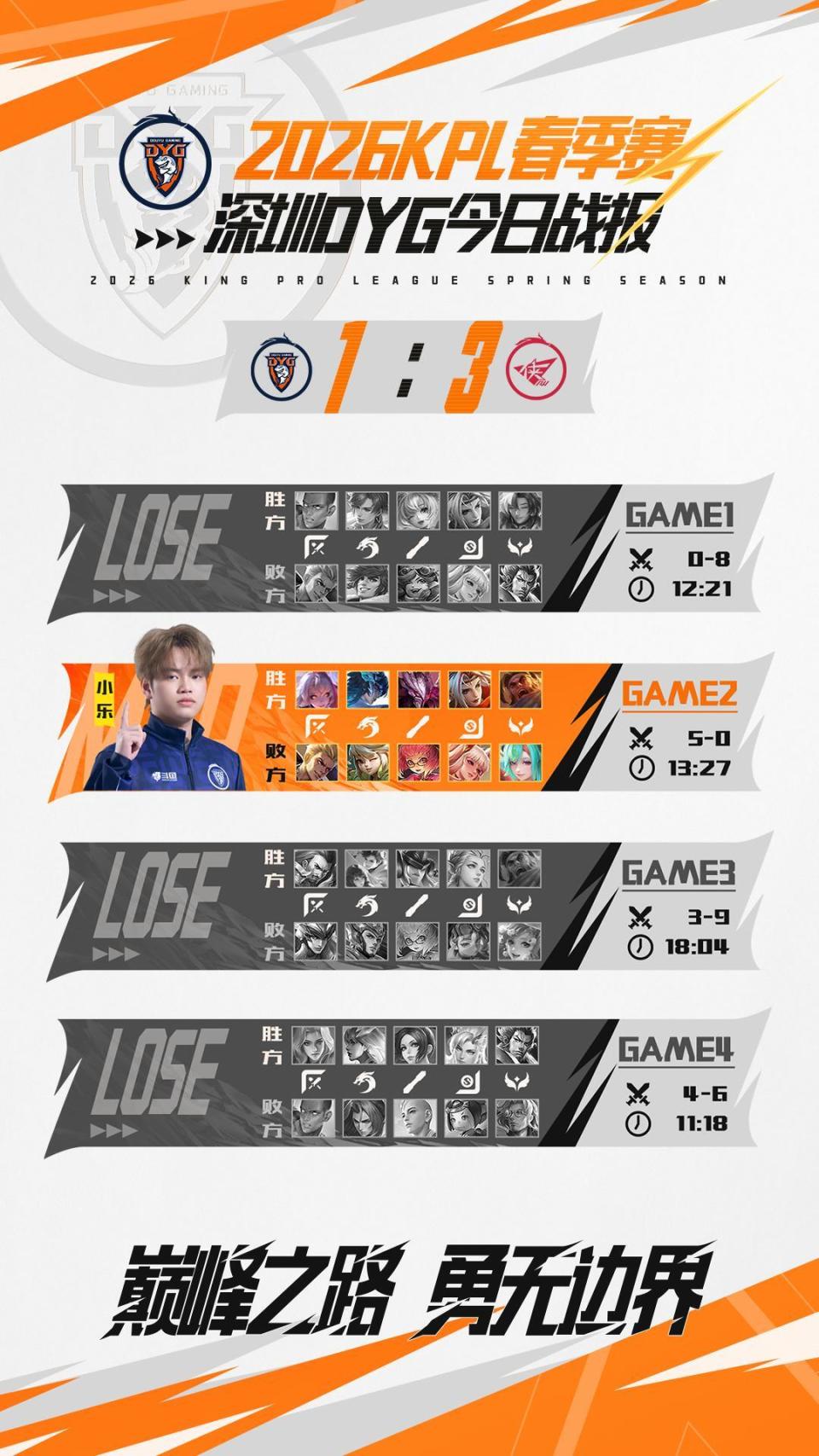 在后续的几场比赛中,DYG曾拿下过一小局,但在BO5的比赛中,这并不是特别够用,一胜一负的成绩让之前很多看好DYG的粉丝感到有点失望,因为在他们看来,DYG既然能够打赢重庆狼队,那么按理来说进个S组应该问题不大,谁曾想才第二场比赛,DYG就已经暴露出很多的问题。
