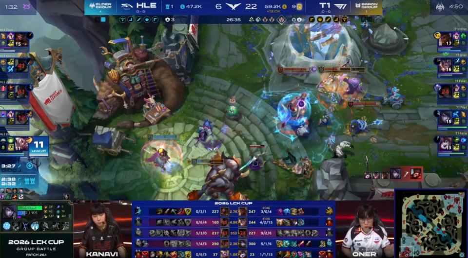 Kanavi猴子河道遇到Oner的赵信,其实打一下也就行了,结果非要追着弄。然后Faker靠过来,Zeka也被逼要靠过来,前期兔子和塞拉斯的战斗力自然是后者更强。随后辅助也赶来,双方原本都要拉开的时候,Kanavi 的猴子强行闪现想要去杀Oner的赵信,结果反送给了Faker双杀!后面?后面比赛就结束了。