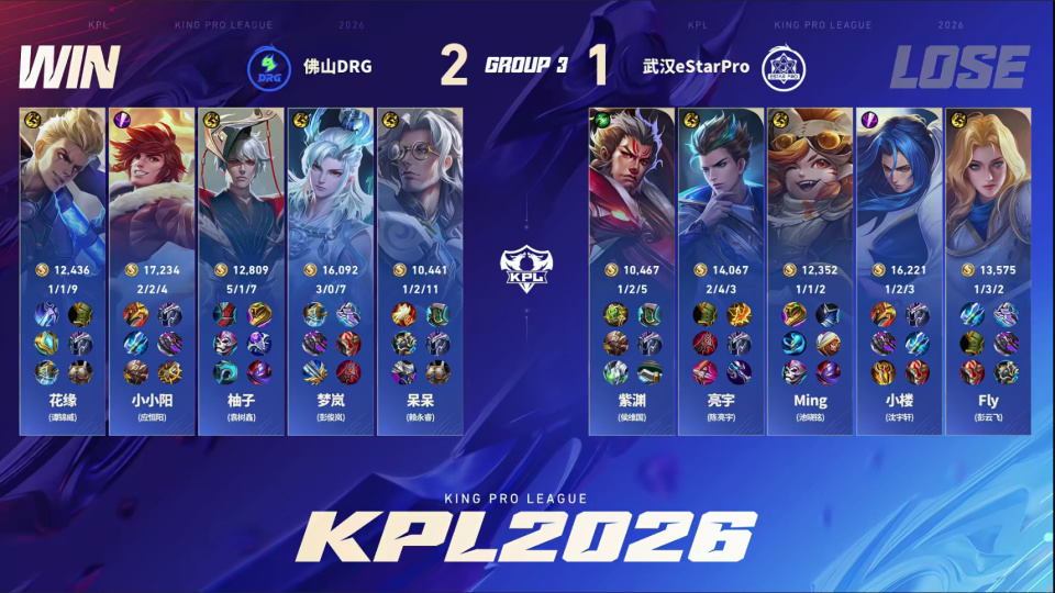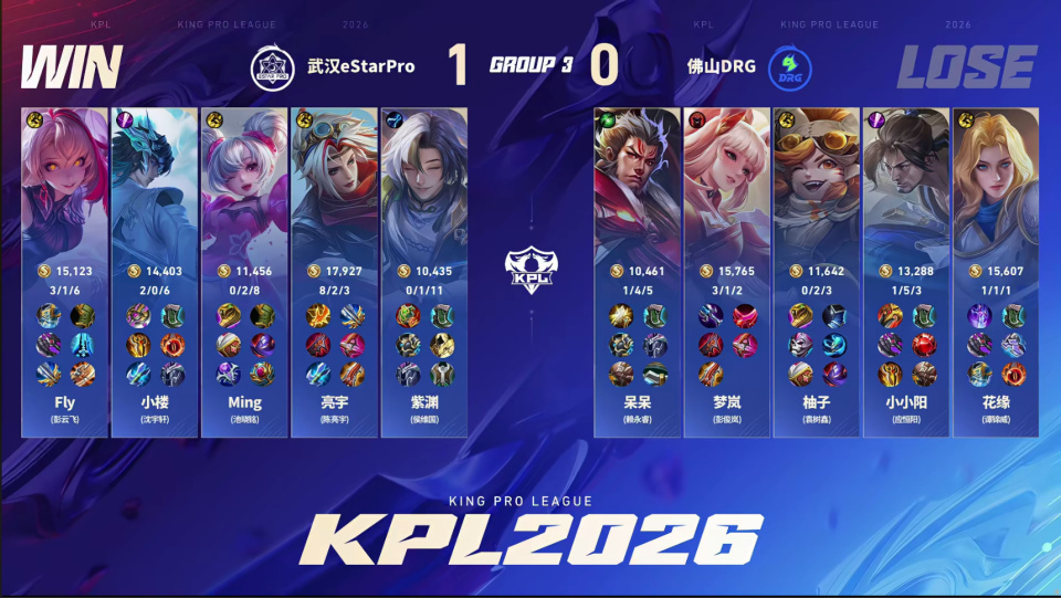 DRG3-1战胜eStar,拿到春季赛首胜。小小阳这场比赛的表现比上一场好一些,但依然没有达到大家的预期,赛后也有些自责。Estar这边fly打得真还行,中射的表现有点差劲。