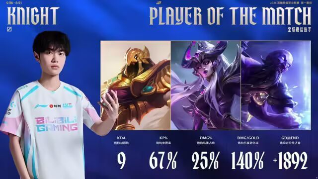 今日LPL进行了一场“大小王之战”,BLG让一追二战胜AL,真的回来了。但是AL团战打得更好,圣枪哥雷克塞顶起4人,Tarzan杰斯收割,AL翻盘先下一城。BLG 3C都有发挥,以1.5万的经济优势碾压获胜,扳平比分。AL再次落后1万经济,Kael芮尔大中4人,让AL燃起翻盘希望。但是最后一波,On慎吸引火力,Xun奇亚娜完美大招,BLG瞬间融化团灭AL,一波获胜。BLG取得新赛季开赛2连胜,虽然场次不多,但都挺有含金量,对手WBG和AL都是LPL纸面实力前4的队伍。暂时可以说,LPL大王BLG回来了!Knight后两局游戏总计只死了1次,拿到2个MVP和整个BO3的最佳选手!之前BLG在德杯被淘汰时,Knight说如果他打德杯就冠军了,很多人就觉得Knight太狂妄。但从赛场表现来看,至少在LPL,Knight仍然是独一档的王者。其实BLG的表现并不完美,尤其是打野Xun,对版本热门英雄熟练度不高。两个BO3 BLG都是昏招频出先输1局,但最后总能发表获胜感言,就是因为他们太适合版本。昨天WE战胜EDG,赛后采访打野Monki说:“打野变得更加公式了,这版本对打野来说前面只能一直刷野,如果做事的话风险会特别高。”新版本塔一直有镀层钱,并且英雄要留在线上做分路任务,所以对线打出优势,单带的收益就特别大,不像去年那样需要去打资源团。恰好BLG 3路线上选手都很强,所以能连克强敌。不过现在也不能说今年BLG就无敌了,万一之后版本又改了呢?赛季开始前,AL去了韩国集训,但短期的集训也无法改变选手的个人能力。AL相当于BLG的反面,3路对线不强,靠的是野辅的节奏,那在这个版本就遭了。3局前期都劣势,即使能翻第一局,也不能指望能翻每一局。不过AL这个队很努力,这场的失利会让他们更加强训练。去年第二赛段季后赛期间,Shanks打出了现象级六边形中单表现,被誉为“LCK有大超,LPL有老香”。Shanks必须找回那时候的状态,AL才有希望。