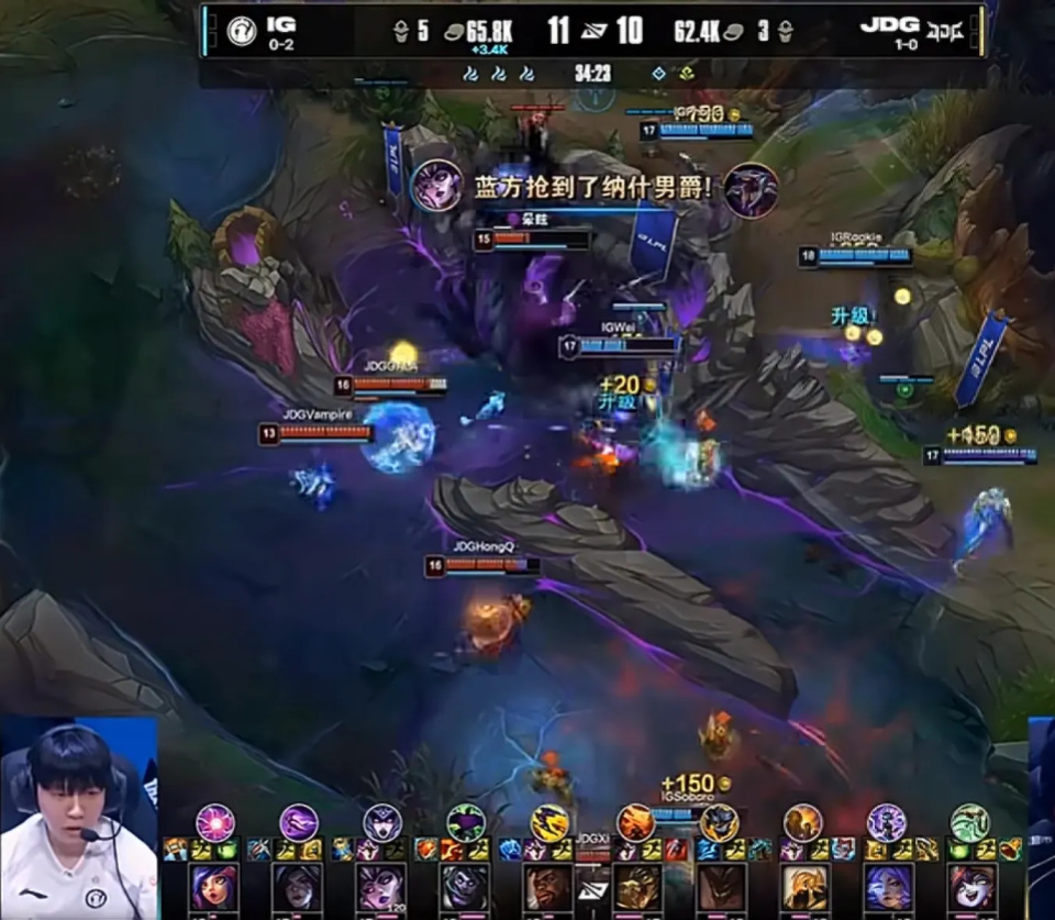 新赛季开始之后,ig战队的整体状态并不是特别的好,揭幕战输给了wbg战队,第二日的比赛又被al战队给碾压。直到第三场对决,他们才击败了jdg战队,拿到了S16赛季的首胜。第一场比赛算是IG战队打的最精彩的一局。前中期,双方战队的对抗是比较激烈的,整个的差距没有拉的太大。Jdg战队算是关键的大龙毁一生,Rookie的辛德拉直接抢下了大龙,同时在中路的追击团战中,一个金身秒躲了对方的鳄鱼控制,再加上辅助妮蔻的大招开团,让ig战队瞬间打出了翻盘的团战。