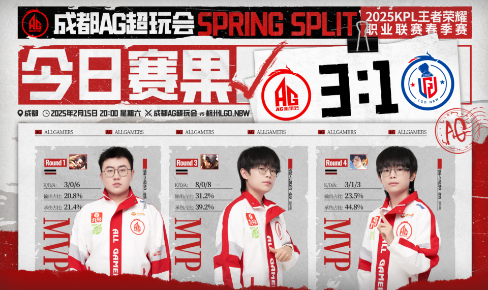如果将时间线拉回2025年KPL春季赛,在当时,手握连冠的AG无限风光,首秀就以3:0的大比分零封WB,又在第二场比赛以3:1的成绩战胜LGD,以高胜率的姿态挺进季后赛,并在总决赛4:1战胜DRG。