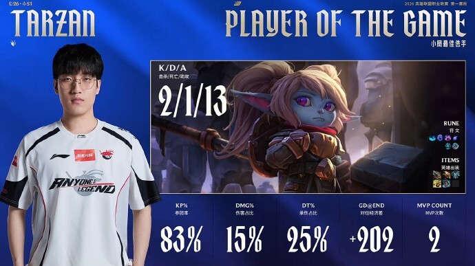 本局MVP给到关键开到冰鸟的Tarzan!