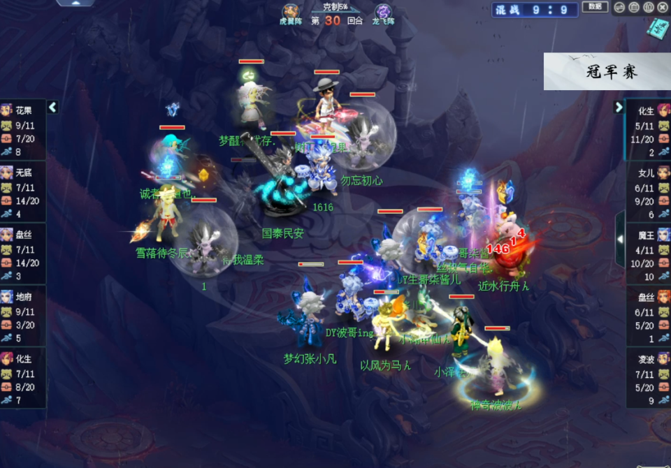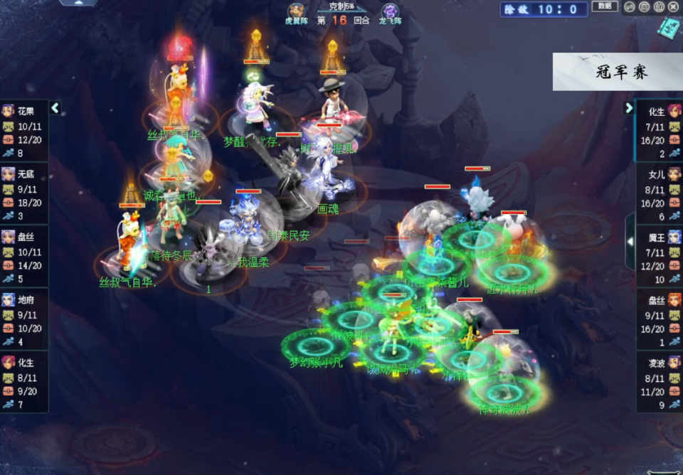 苏堤春晓(观战方):化生、力女儿、魔王、盘丝、凌波。