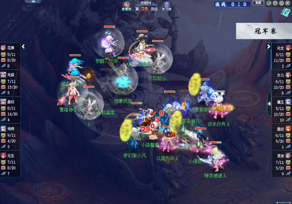 比赛第28回合,紫禁城花果山一马当先,打出28038点伤害清掉苏堤春晓拉人孩子,彻底断了苏堤春晓的翻盘念想。
