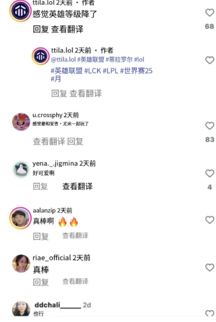 更有意思的是,这组定妆照和赛场截图很快被搬到了韩网,和不少人预想中的“毒舌模式”不同,韩网评论区的画风意外地友好,有人直言“双眼皮做得很自然,很可爱”,还有人调侃他“像悠米”,一时间让不少国内观众分不清这是夸人,还是高级玩梗。毕竟在LOL圈子里,把一个上单形容成“像悠米”,多少带点反差感。