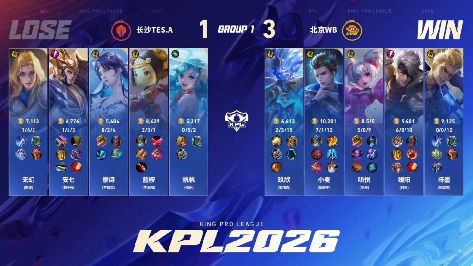 但他还没亮屏,安七的杨戬就被勾了,WB众人集火带走。本来WB经济优势就很大,还有人数优势,这下真没了,WB打持续掉点,3-1战胜TES。