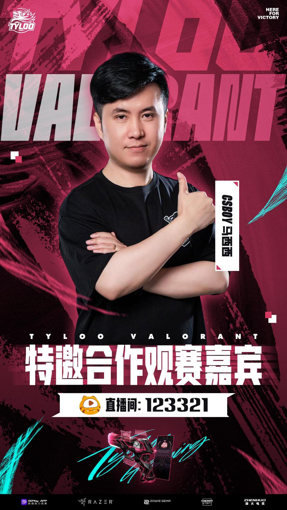 虎扑01月20日讯 TYL官宣无畏契约特邀合作观赛嘉宾: